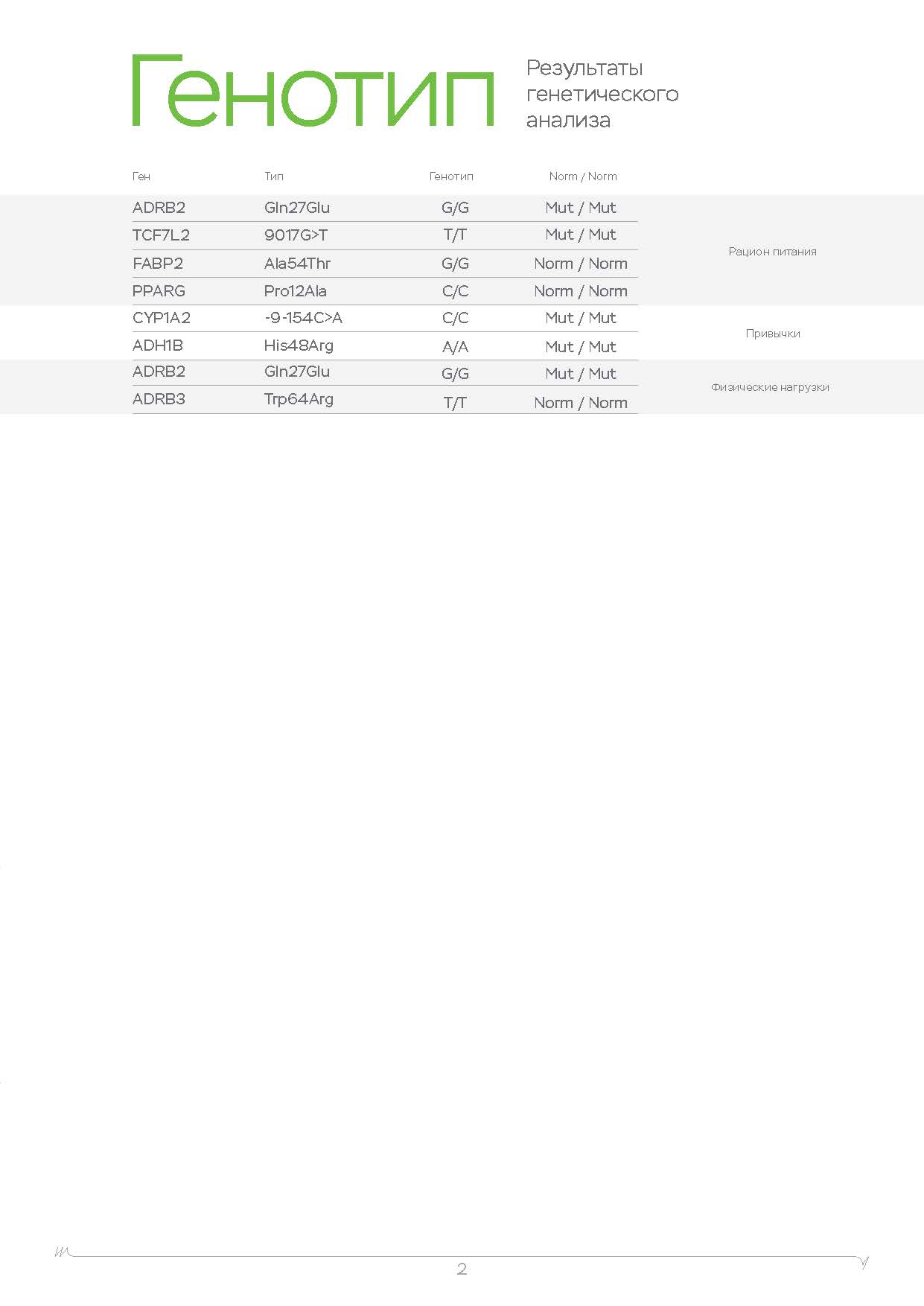 | Рацион питания Метаболизм алкоголя Метаболизм кофеина Физическая нагрузка Непереносимости Вкусовые ощущения Никотин Психологические зависимости Пищевое поведение Потребность в витаминах Уровень холестерина Спортивный потенциал | Рацион питания Метаболизм алкоголя Метаболизм кофеина Физическая нагрузка Непереносимости Вкусовые ощущения Никотин Психологические зависимости Пищевое поведение Потребность в витаминах Уровень холестерина Спортивный потенциал | Рацион питания Метаболизм алкоголя Метаболизм кофеина Физическая нагрузка Непереносимости Вкусовые ощущения Никотин Психологические зависимости Пищевое поведение Потребность в витаминах Уровень холестерина Спортивный потенциал |